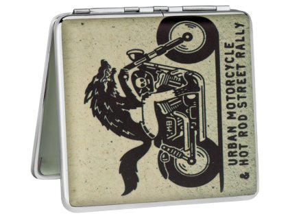 Tabatěrka BLACK RETRO STYLE je kovové cigaretové pouzdro se dvěmi příklopnými pružinkami pro upevnění cigaret, které pojme 20 klasických, případně 24 slim cigaret.
