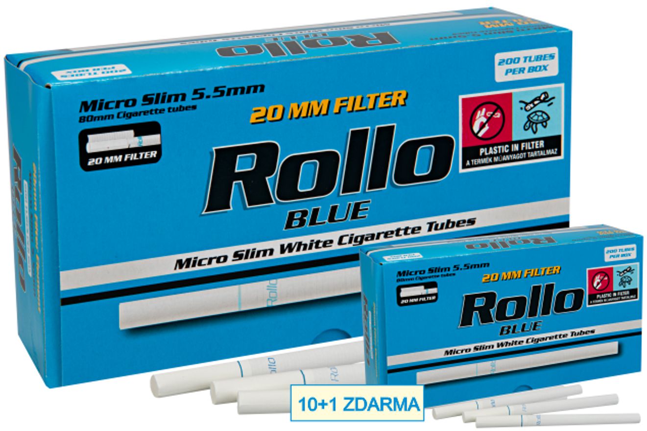 10 + 1 ZDARMA (2.200ks) - Lehké (light) cigaretové dutinky ROLLO Ultra Slim Blue 200 jsou fantastické slim dutinky o průměru 6,5mm, nyní dokonce s filtrem...