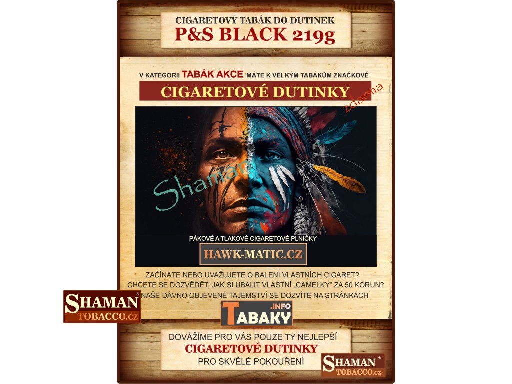 Cigaretový tabák P&S určený pro ubalení vlastních cigaret do kvalitních cigaretových dutinek