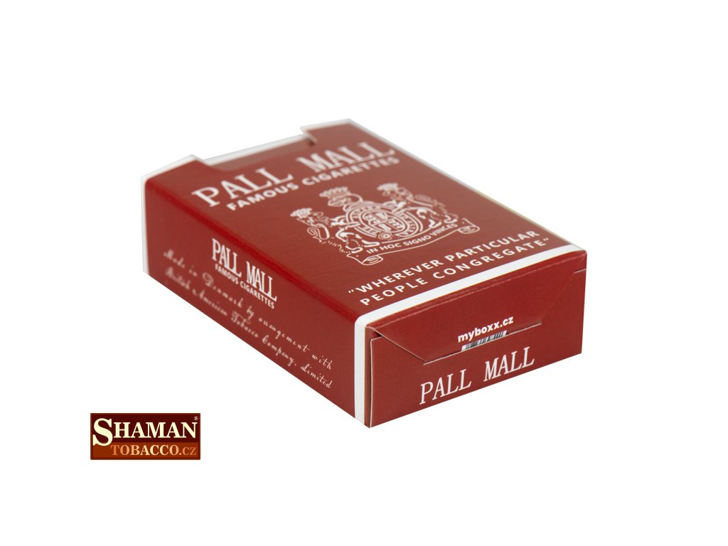 Pevná skládací papírová krabička myBOXX s RETRO motivem PALL MALL RED slouží jako obal na běžnou velikost cigaretových krabiček.