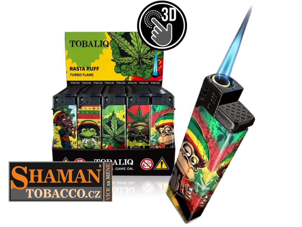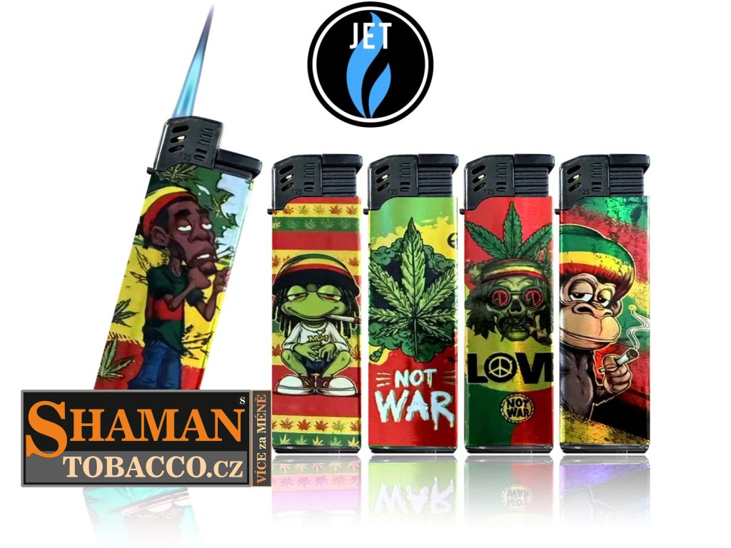 Vysoce kvalitní tryskový zapalovač 3D ALU JET "RASTA PUFF" s atraktivními motivy,