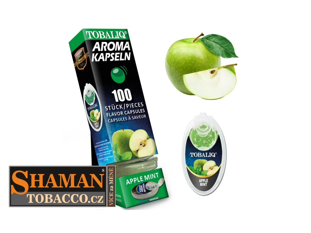 Ochucené práskací kapsle TOBALIQ "APPLE MINT" v balení po 100ks Vám zaručí osvěžující chuť svěžích jablíček s mátou.