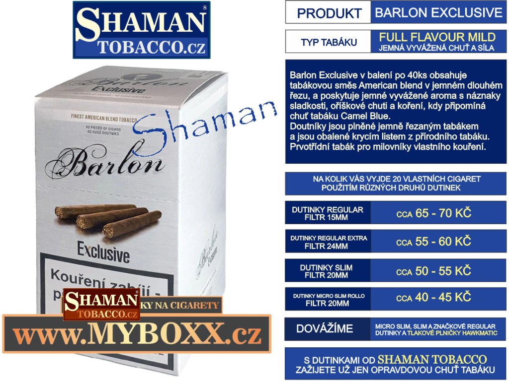Barlon Exclusive v balení po 40-ti kusech jsou velmi oblíbené doutníky se směsí american blend. Nejlevnější kouření na trhu.