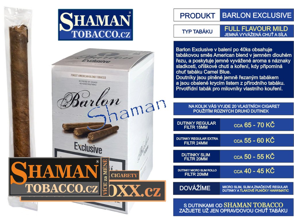 Barlon Exclusive v balení po 40-ti kusech jsou velmi oblíbené doutníky se směsí american blend. Nejlevnější kouření na trhu.