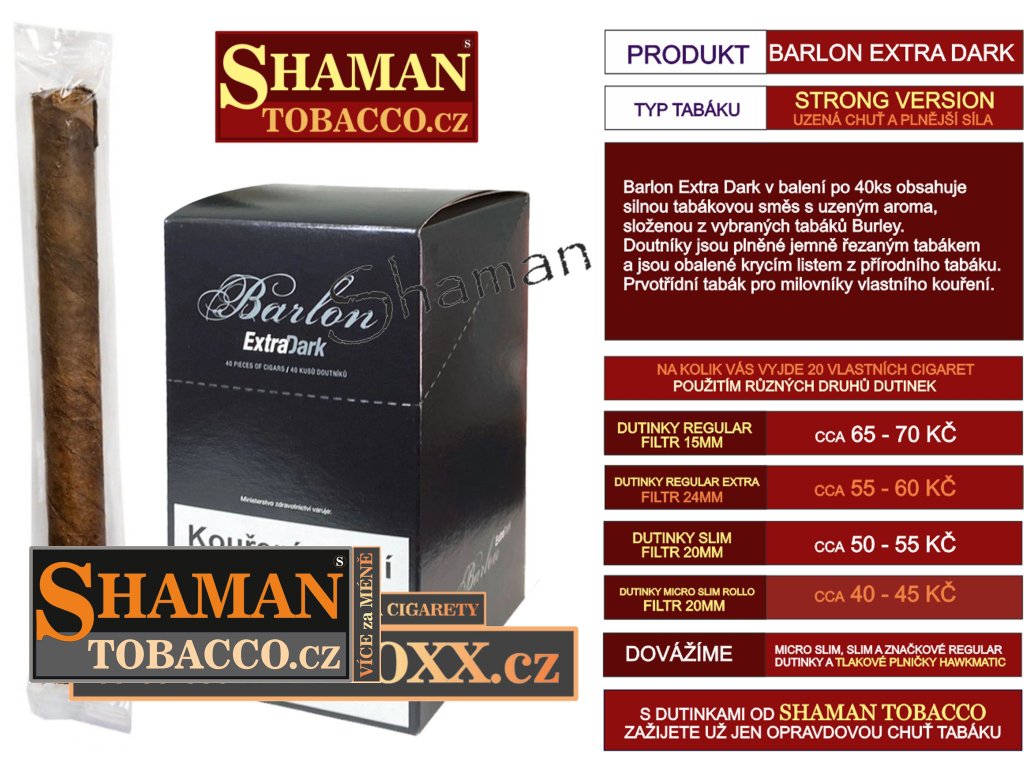 Barlon Extra Dark v balení po 40-ti kusech jsou velmi oblíbené doutníky se silně uzenou směsí Burley. Nejlevnější kouření na trhu.