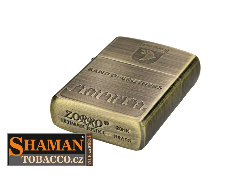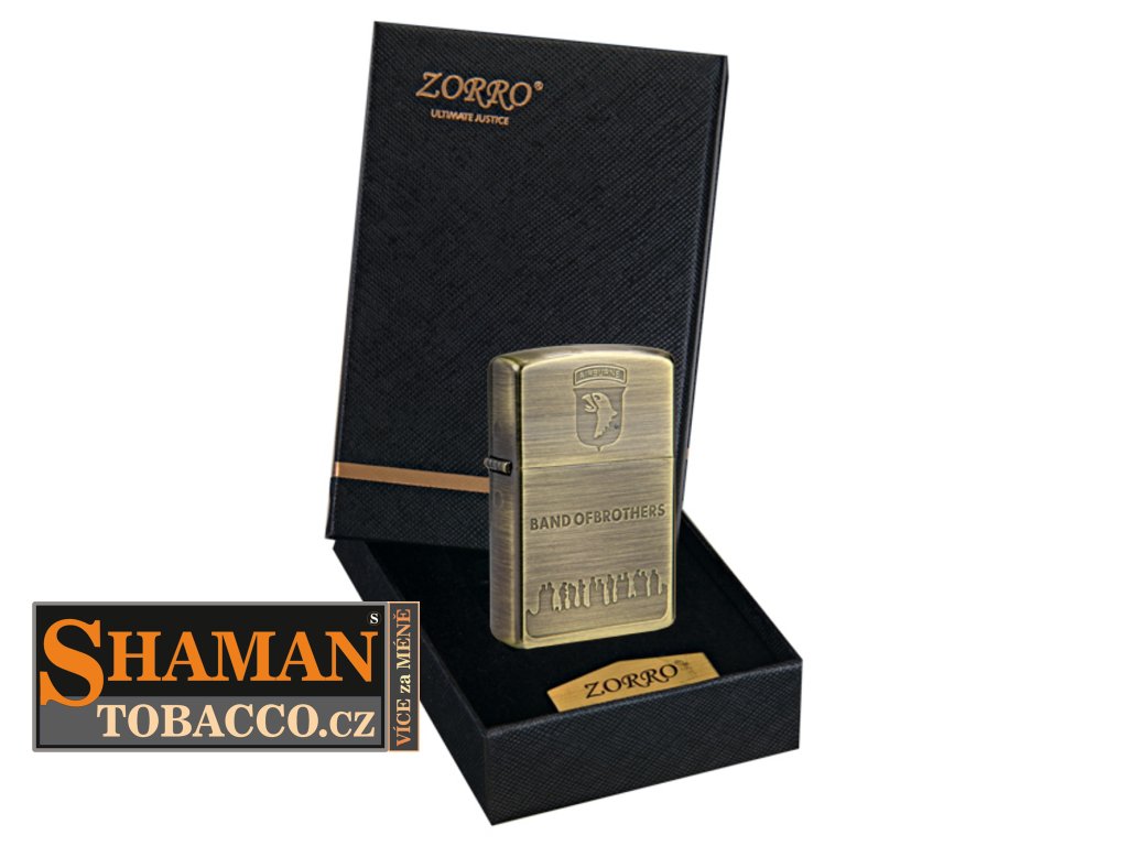 Originální ZORRO® benzínový zapalovač BAND OF BROTHERS, zdobený z přední strany.