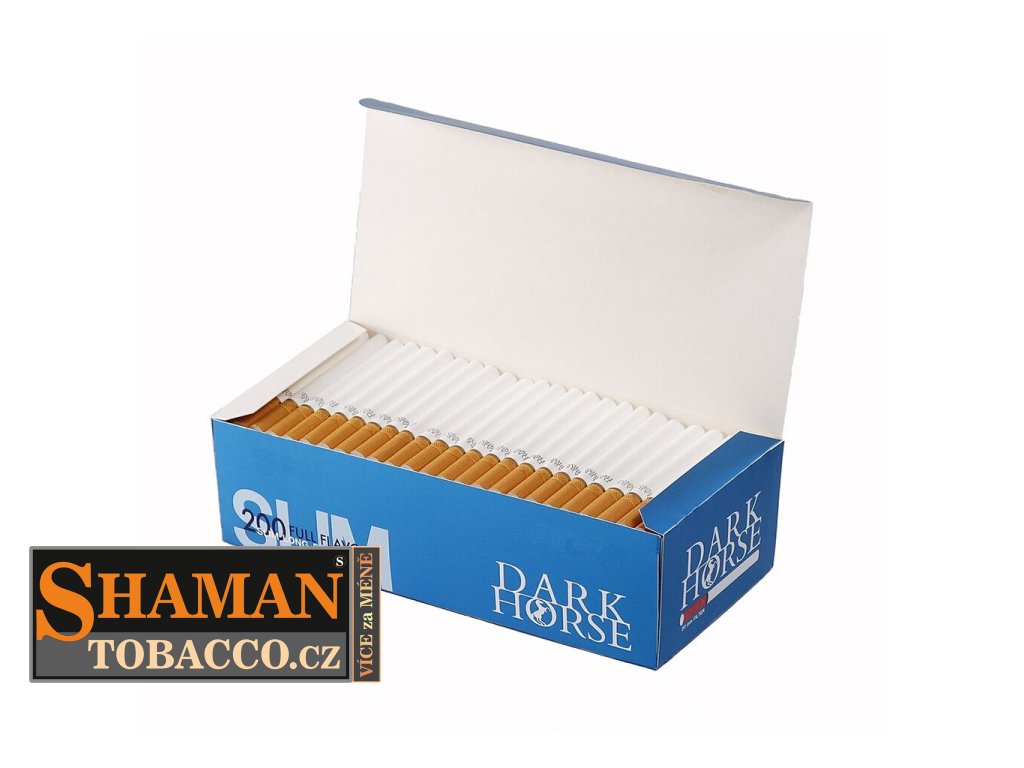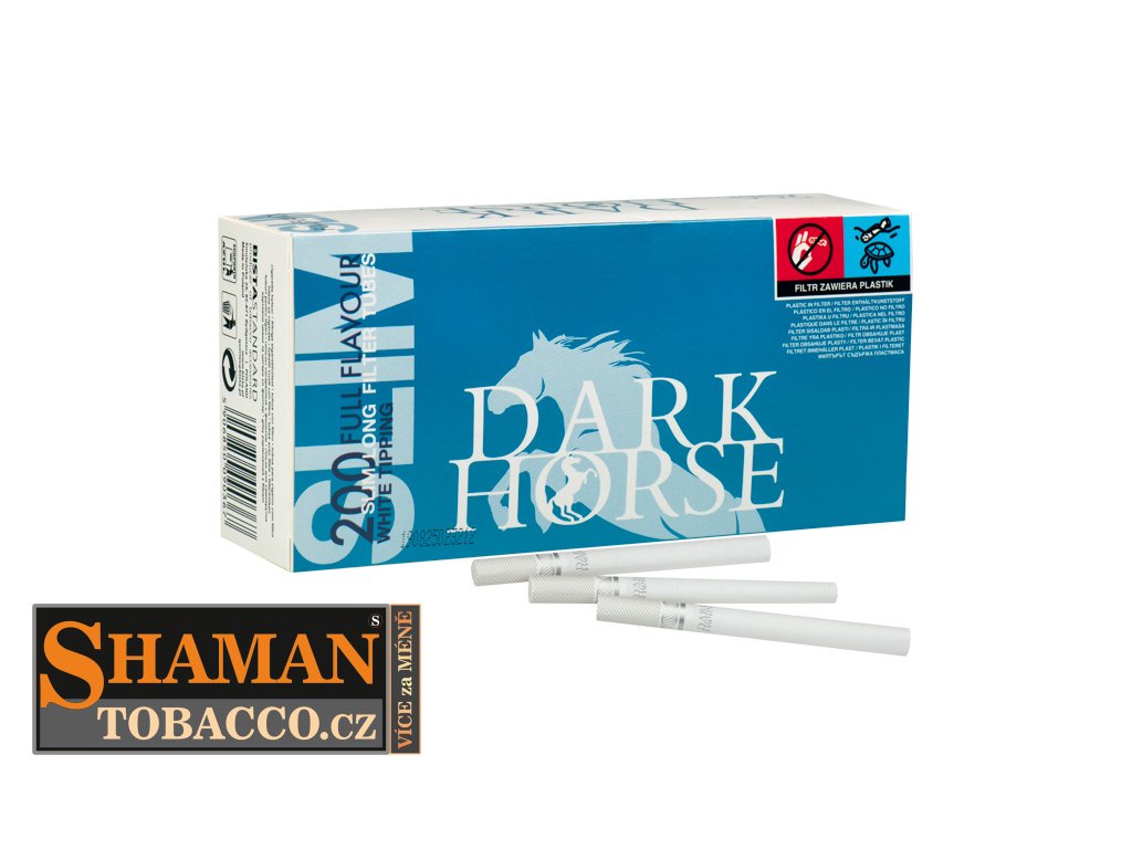 Cigaretové dutinky DARK HORSE SLIM COMPACT WHITE Long Filter 200 jsou kompaktní slim dutinky o průměru 7mm, s delším filtrem 20mm, díky kterému mimo jiné ušetříte až 20% tabáku.