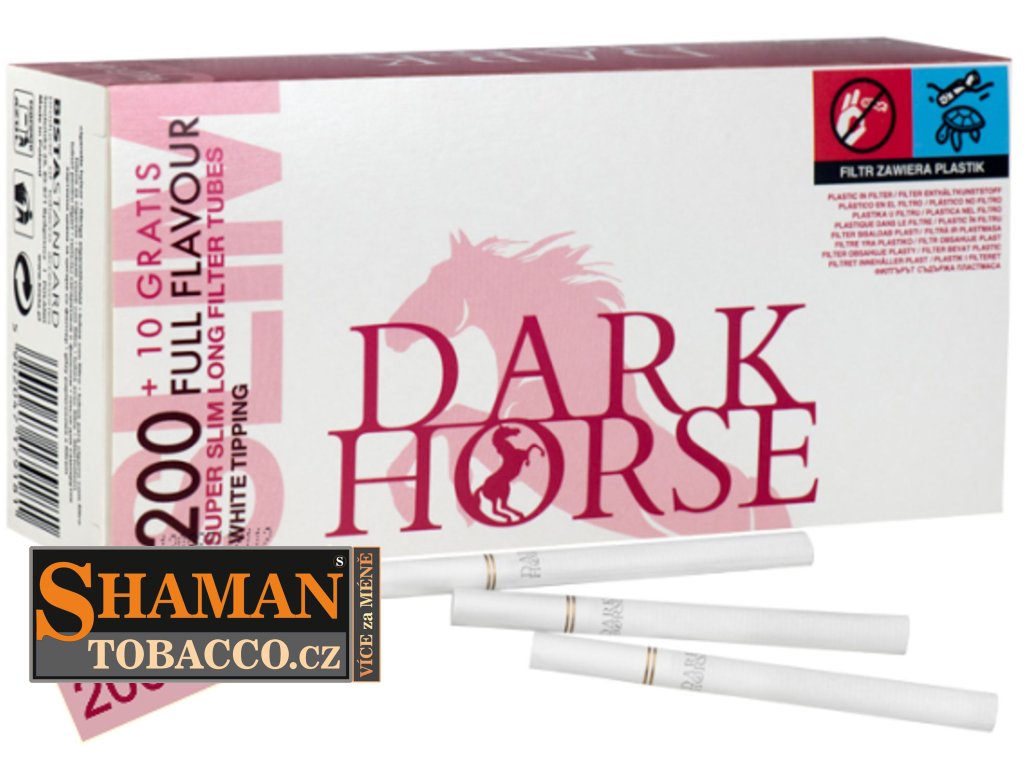 Cigaretové lehké dutinky DARK HORSE Super Slim Long White Filter 200+10 jsou tenké light slim dutinky o průměru 6,5mm, s bílým filtrem dlouhým úctyhodných 20mm, díky kterému mimo jiné ušetříte až 30% tabáku.