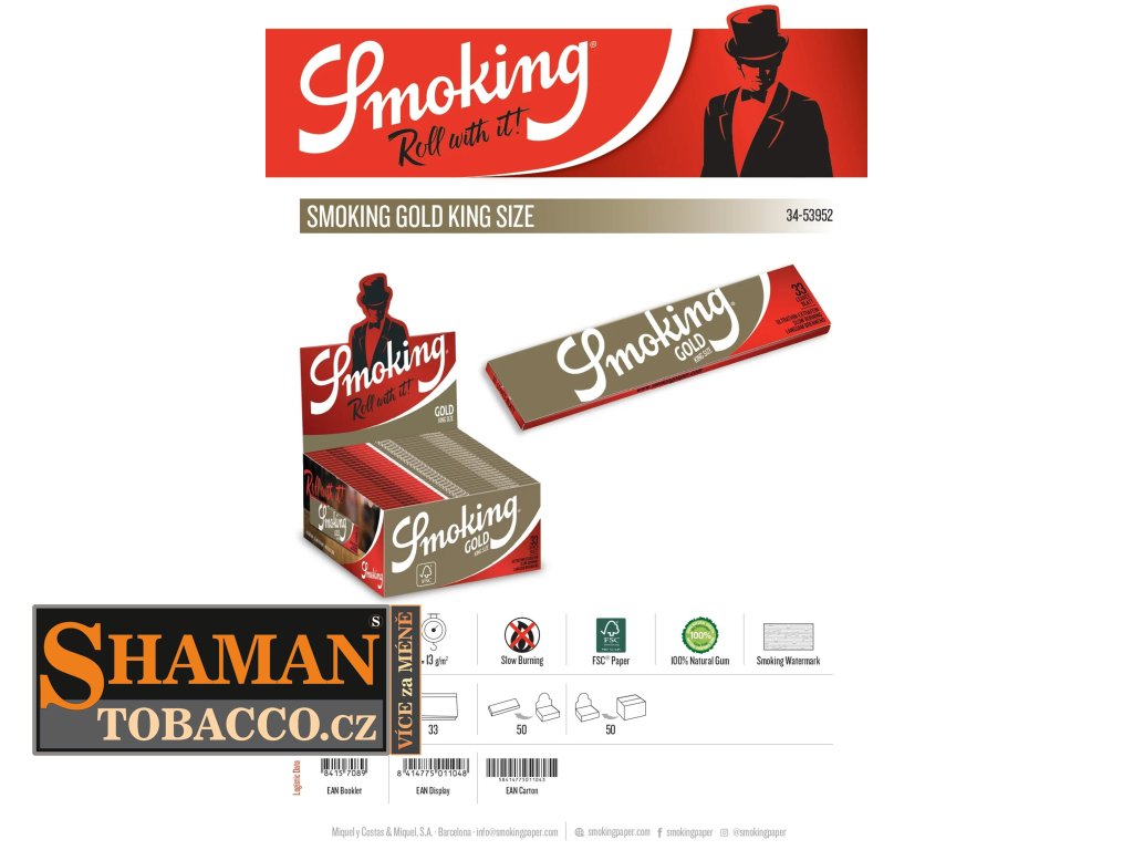 Cigaretové papírky Smoking Gold disponují k perfektnímu lepení přírodní arabskou gumu, z Akácie.