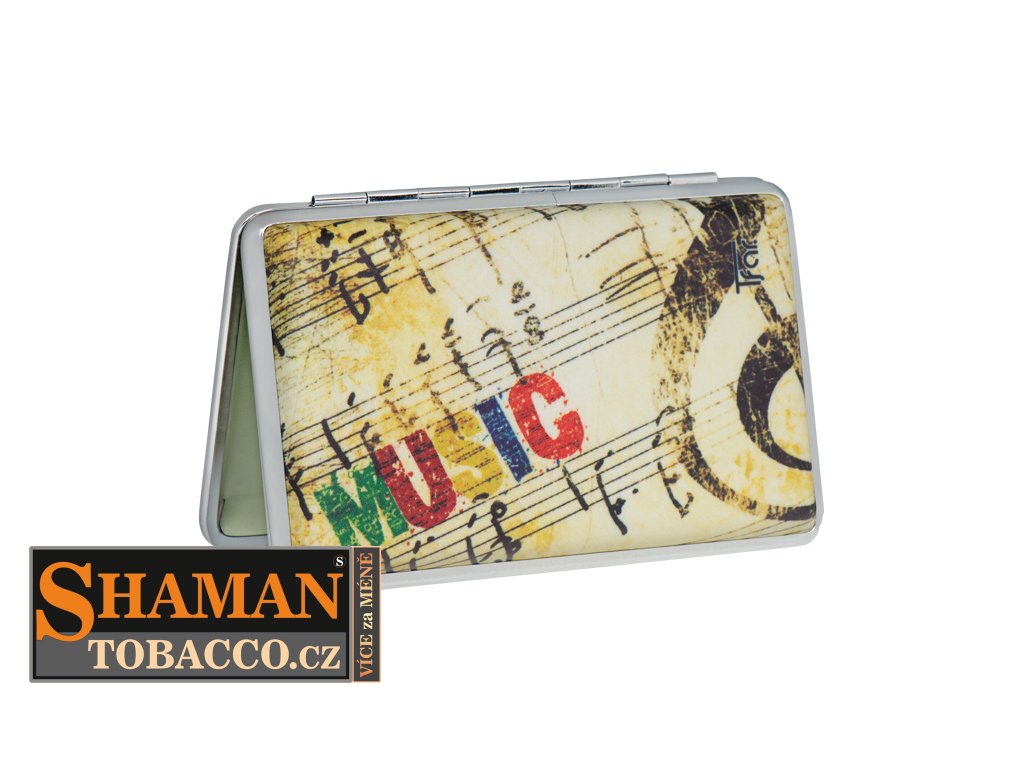 Tabatěrku z PU kůže s retro motivem pěkně doplňuje stříbrné kovové orámování.