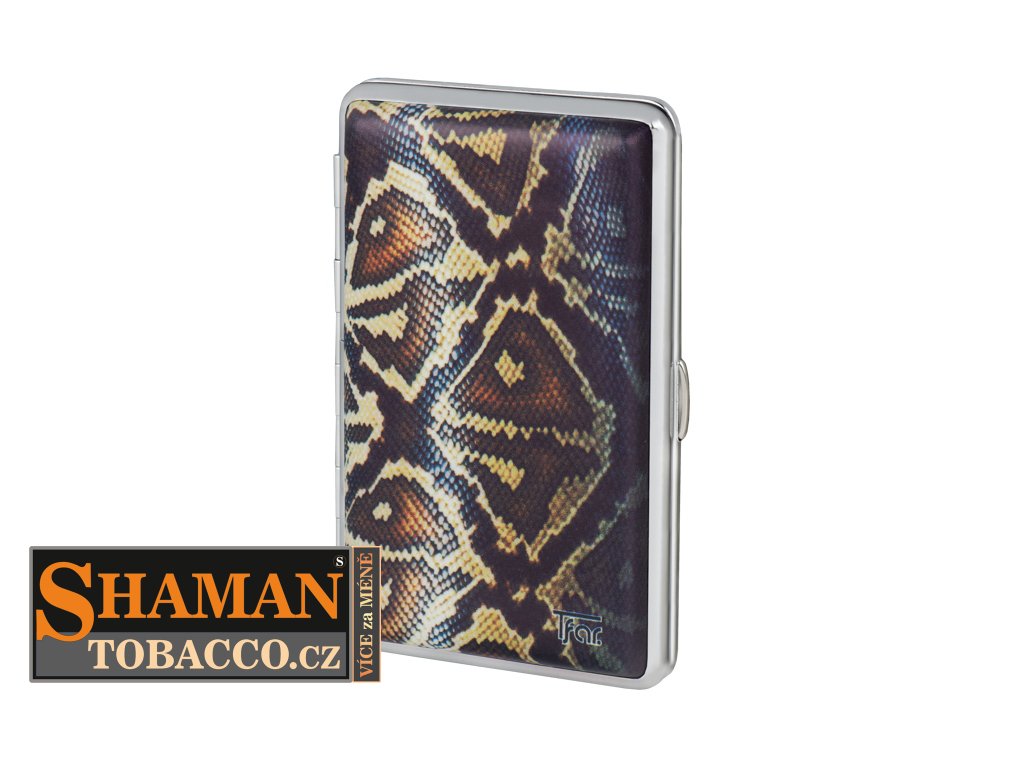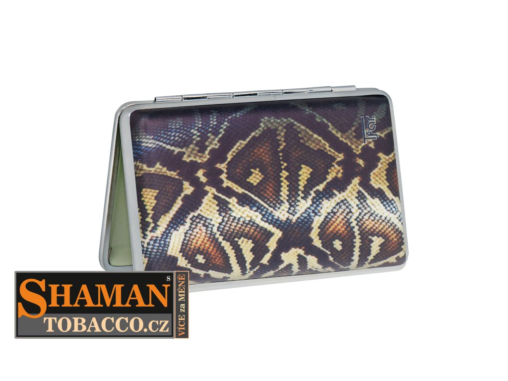 Tabatěrku z PU kůže s retro motivem pěkně doplňuje stříbrné kovové orámování.