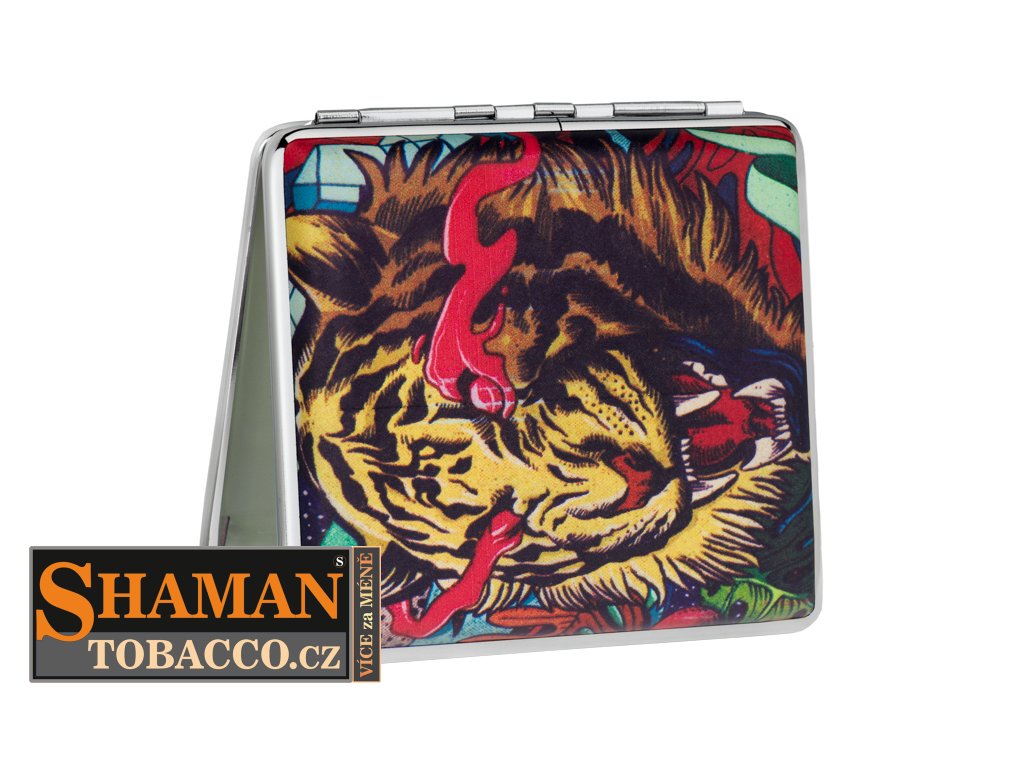 Tabatěrku z PU kůže s retro motivem pěkně doplňuje stříbrné kovové orámování.