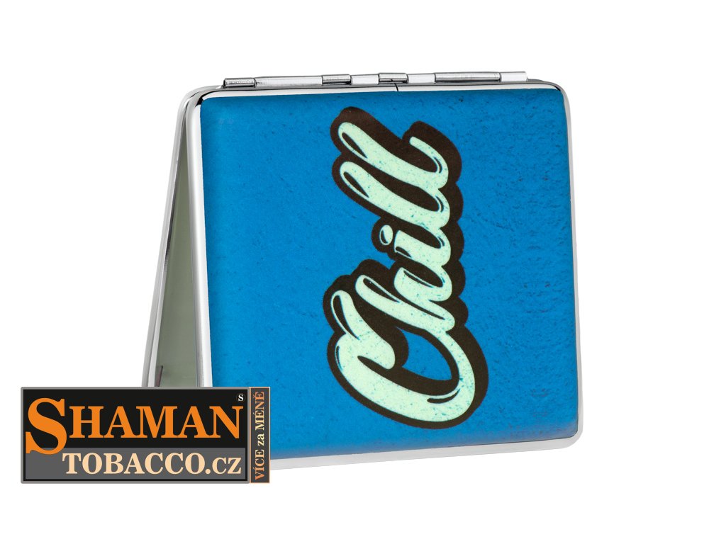 Tabatěrku z PU kůže s retro motivem pěkně doplňuje stříbrné kovové orámování.