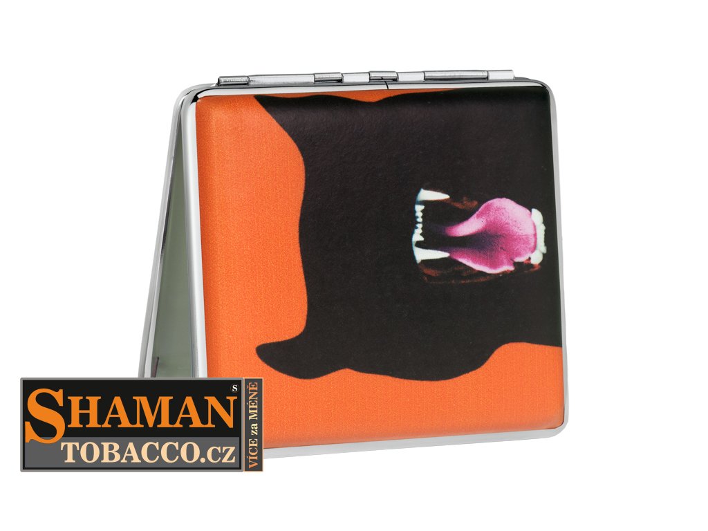 Tabatěrku z PU kůže s retro motivem pěkně doplňuje stříbrné kovové orámování.