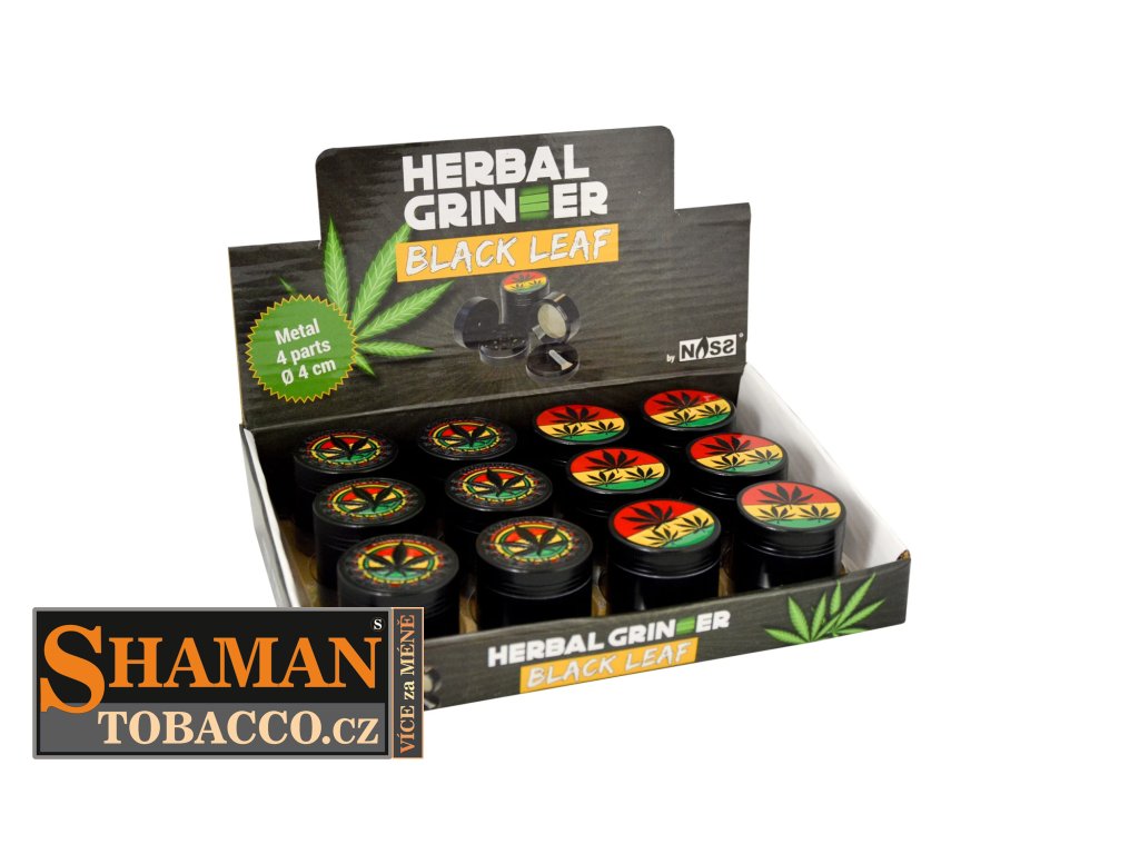 Kovová 4-dílná drtička "BLACK 3 LEAVES" o průměru 40mm s atraktivním motivem v dominantní černé barvě