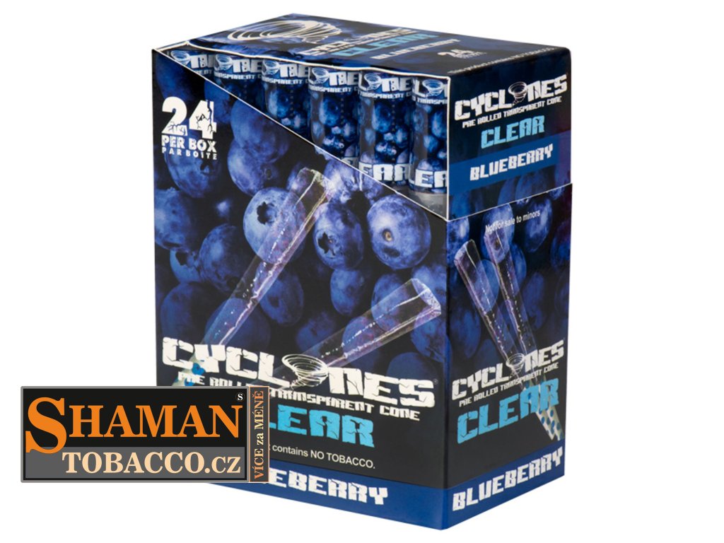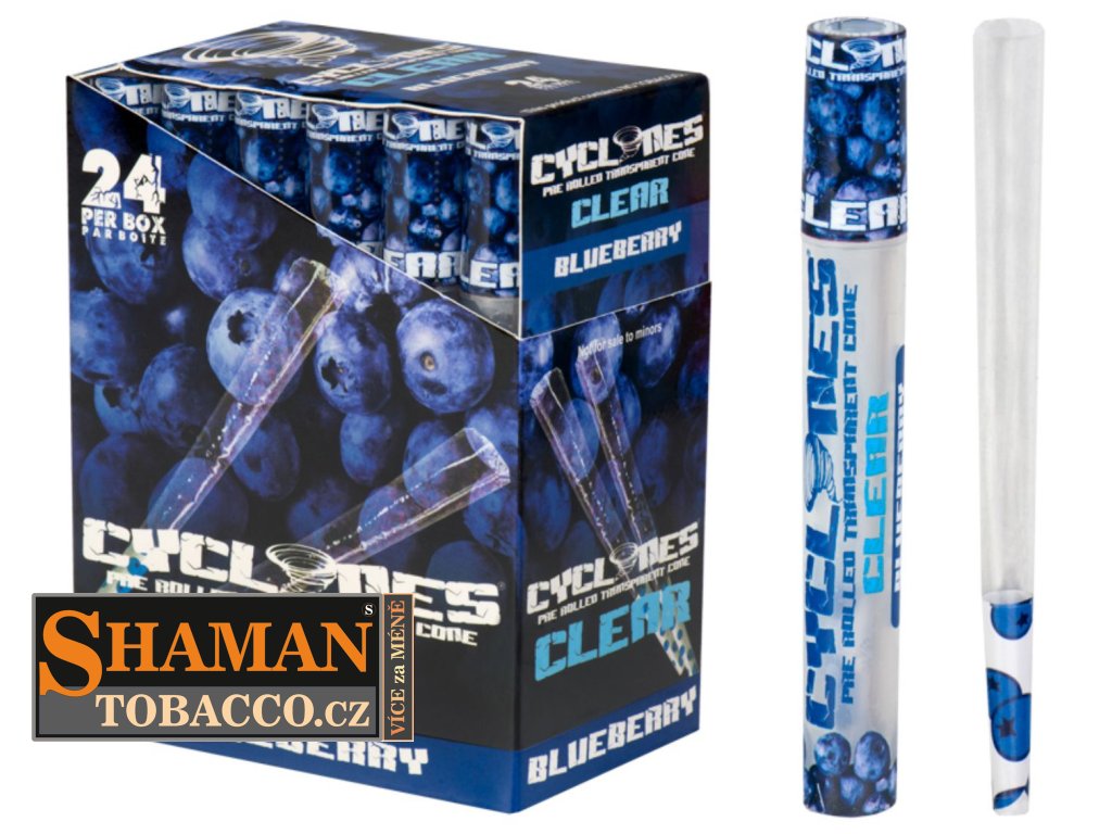 Oblíbené kónické dutinky CYCLONES CLEAR Blueberry s borůvkovou příchutí jsou již předrolované pro snadné použití. Edice Clear klade důraz především na vizuální zážitek pokouření.