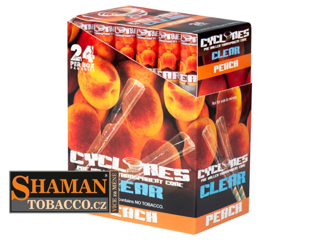Oblíbené kónické dutinky CYCLONES CLEAR Peach s příchutí sladké broskve jsou již předrolované pro snadné použití. Edice Clear klade důraz především na vizuální zážitek pokouření.