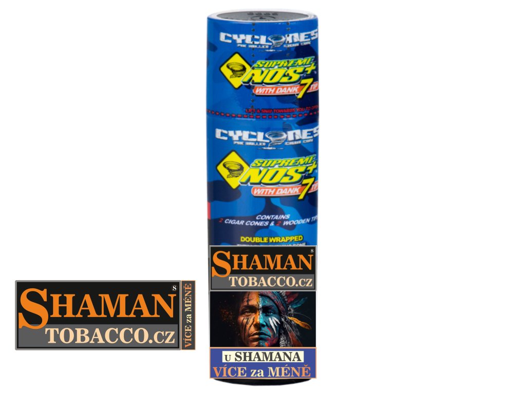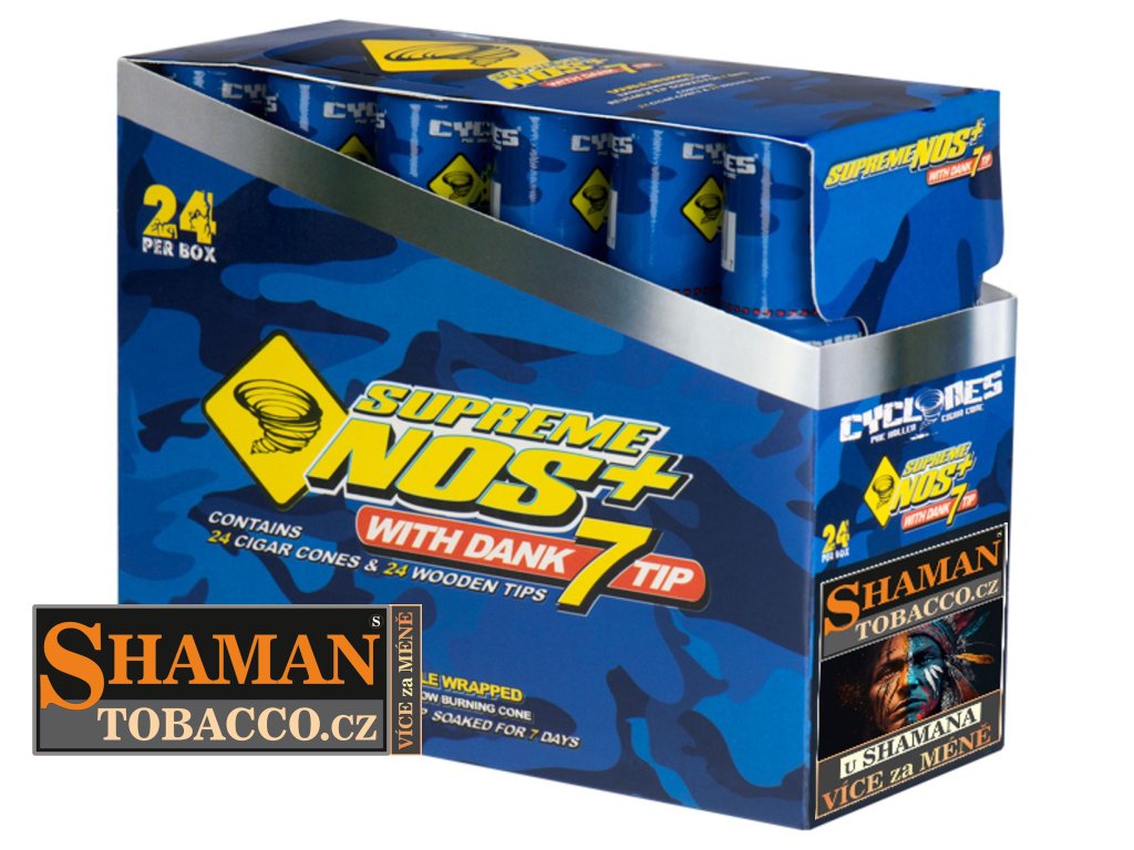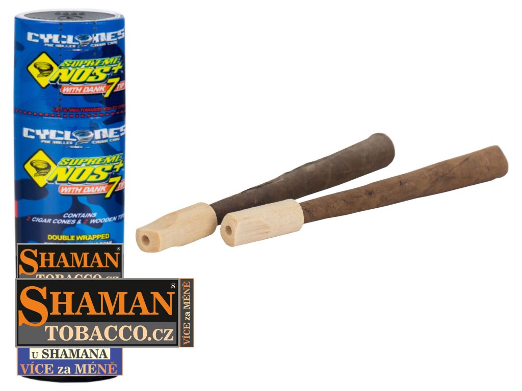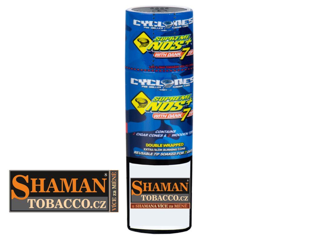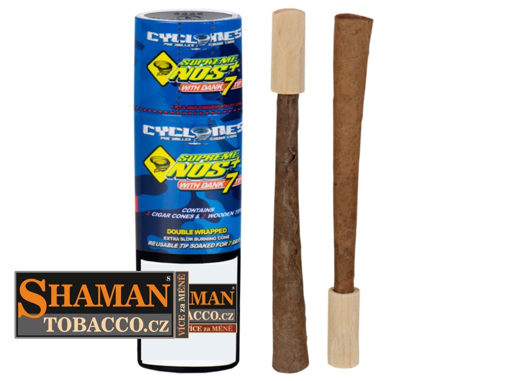 Oblíbené kónické dutinky CYCLONES BLUNT CONES ExtraSlow Supreme NOS s příchutí energetického nápoje jsou již předrolované pro snadné použití. Balení obsahuje 2ks a dřevěný filtr typu Dank7.