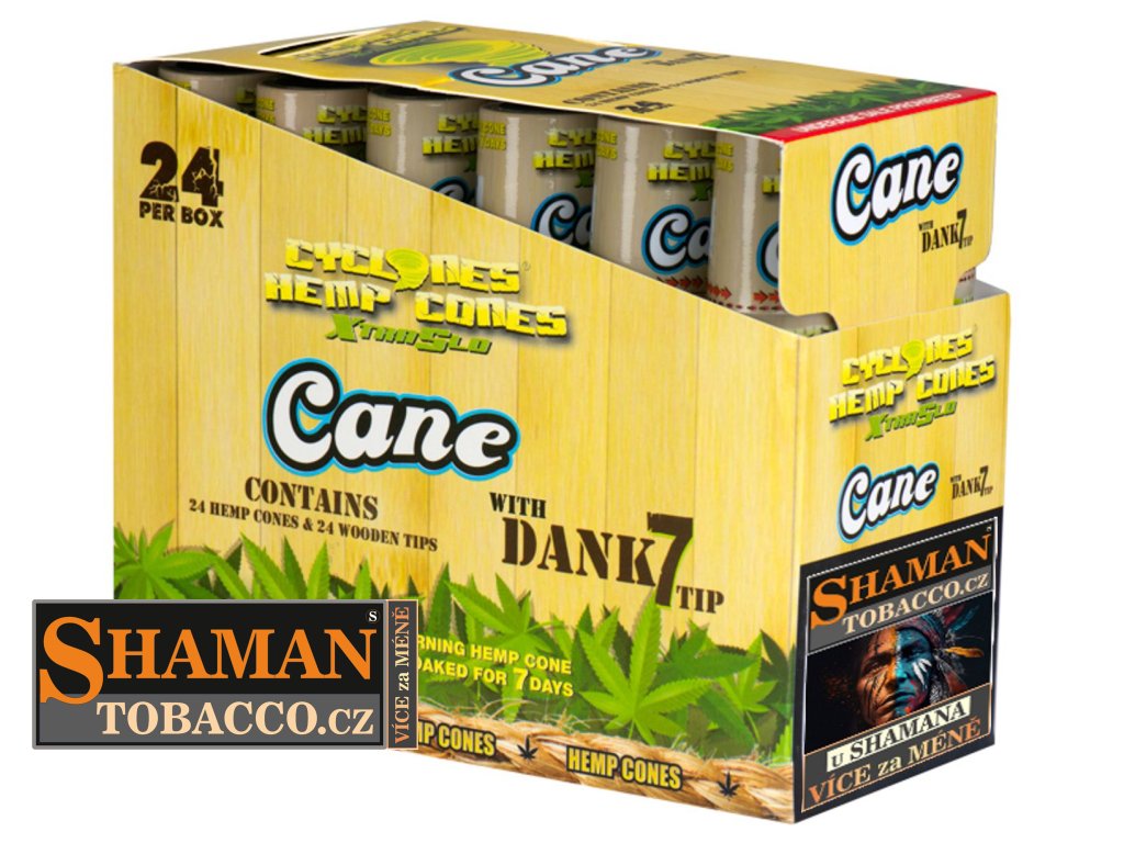 Oblíbené kónické dutinky CYCLONES BLUNT CONES HEMP ExtraSlow CANE s příchutí cukrové třtiny jsou již předrolované pro snadné použití. Balení obsahuje 2ks s dřevěnými filtry typu Dank7.