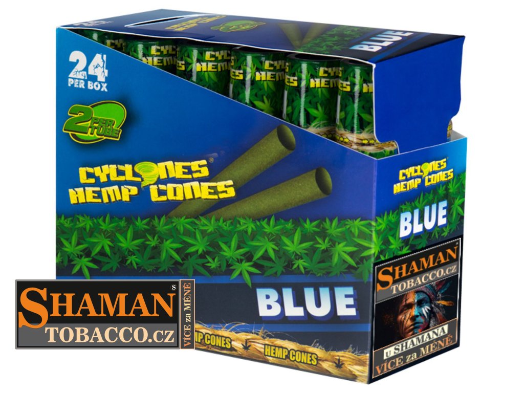 Oblíbené kónické konopné dutinky CYCLONES HEMP BLUNT CONES KS BLUE s borůvkovou příchutí jsou již předrolované pro snadné použití. Balení obsahuje 2ks.