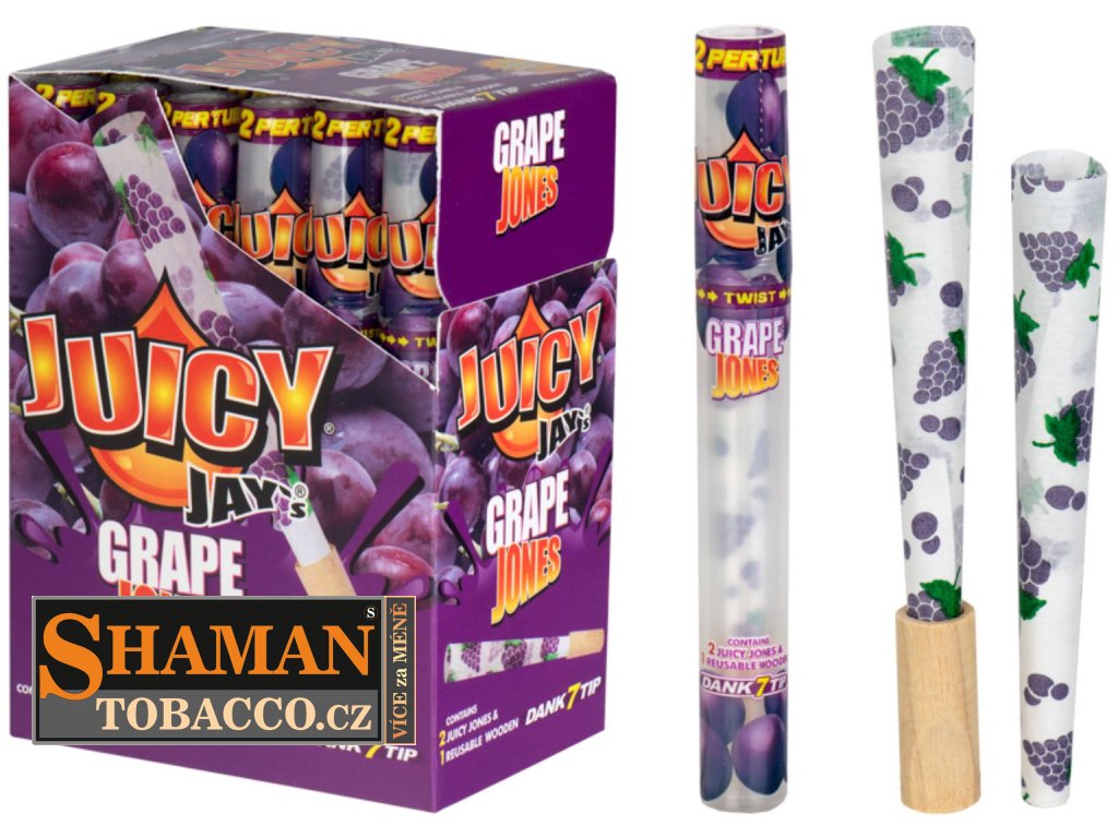 Oblíbené kónické dutinky Juicy Jays Jones Grape jsou konopné dutinky s výraznou chutí a autentickým aroma. S příchutí sladkých hroznů.