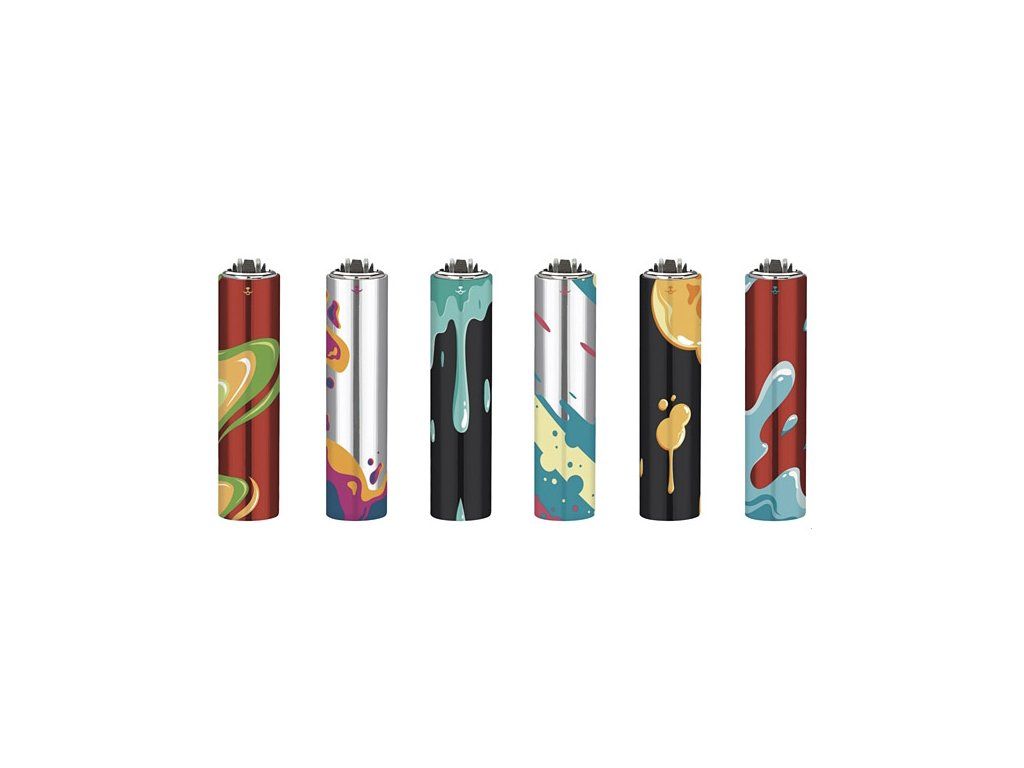 Kovové a opakovaně plnitelné zapalovače Clipper Metal s motivem Fluid Forms.