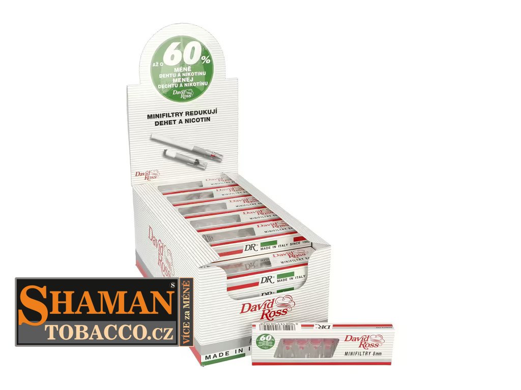Minifiltry od výrobce David Ross, které se nasazují na filtr cigarety a redukují tak množství vdechovaného dehtu a nikotinu až o 60%. V klasické velikosti s průměrem 8mm.