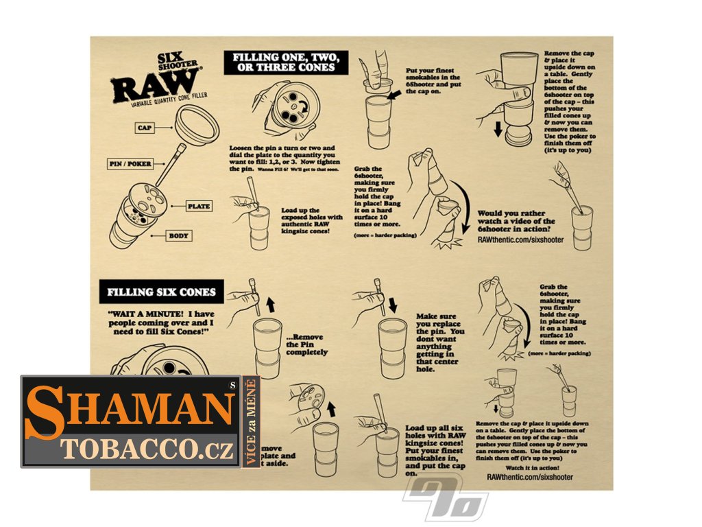 Tento geniální nástroj je navržen pro každého, kdo chce naplnit 1, 2, 3 nebo až 6 RAW předbalených konických dutinek najednou – podle nálady a potřeby. Stačí upravit otočný disk, nasypat svůj oblíbený mix, párkrát zatřást a sledovat, jak se kornouty naplní téměř samy.