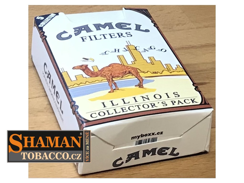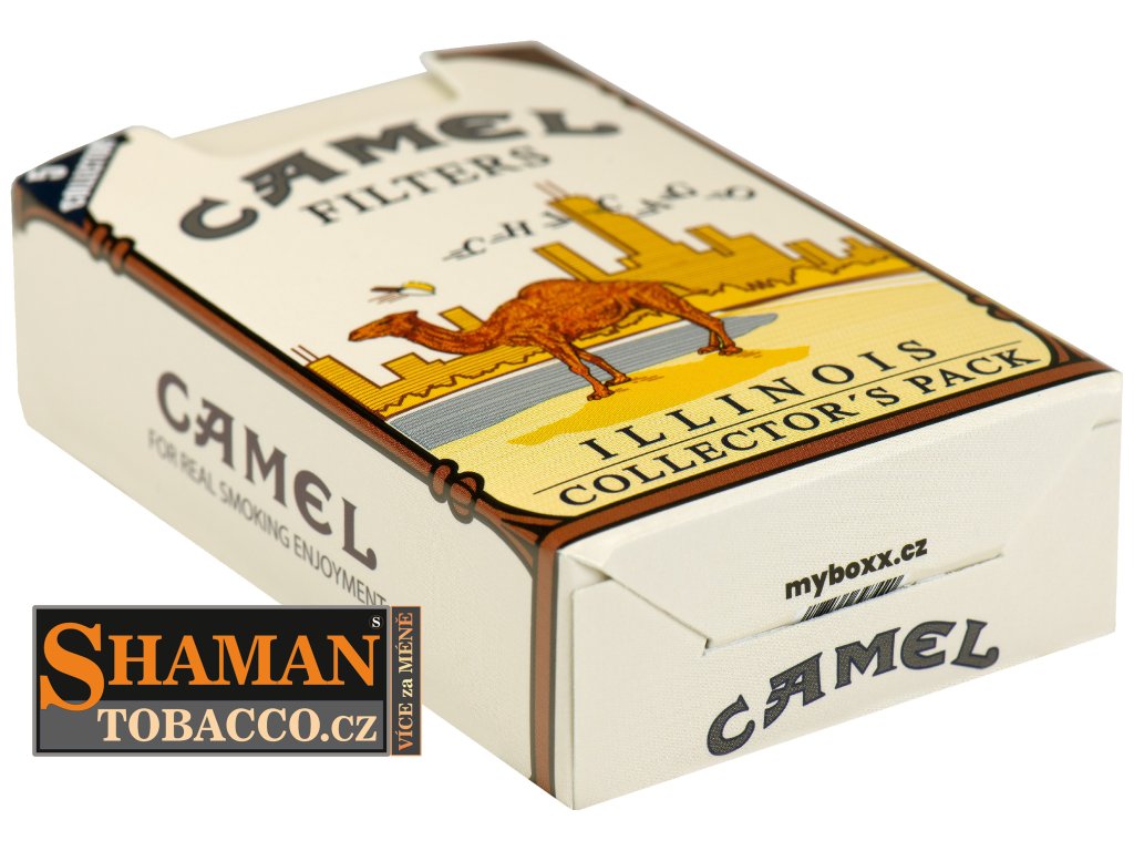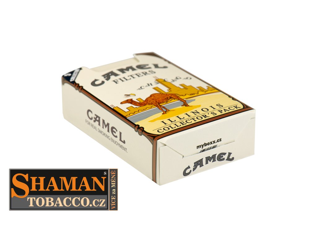 Pevná skládací papírová krabička myBOXX s RETRO motivem CAMEL ILLINOIS (sběratelská kolekce) slouží jako obal na běžnou velikost cigaretových krabiček.