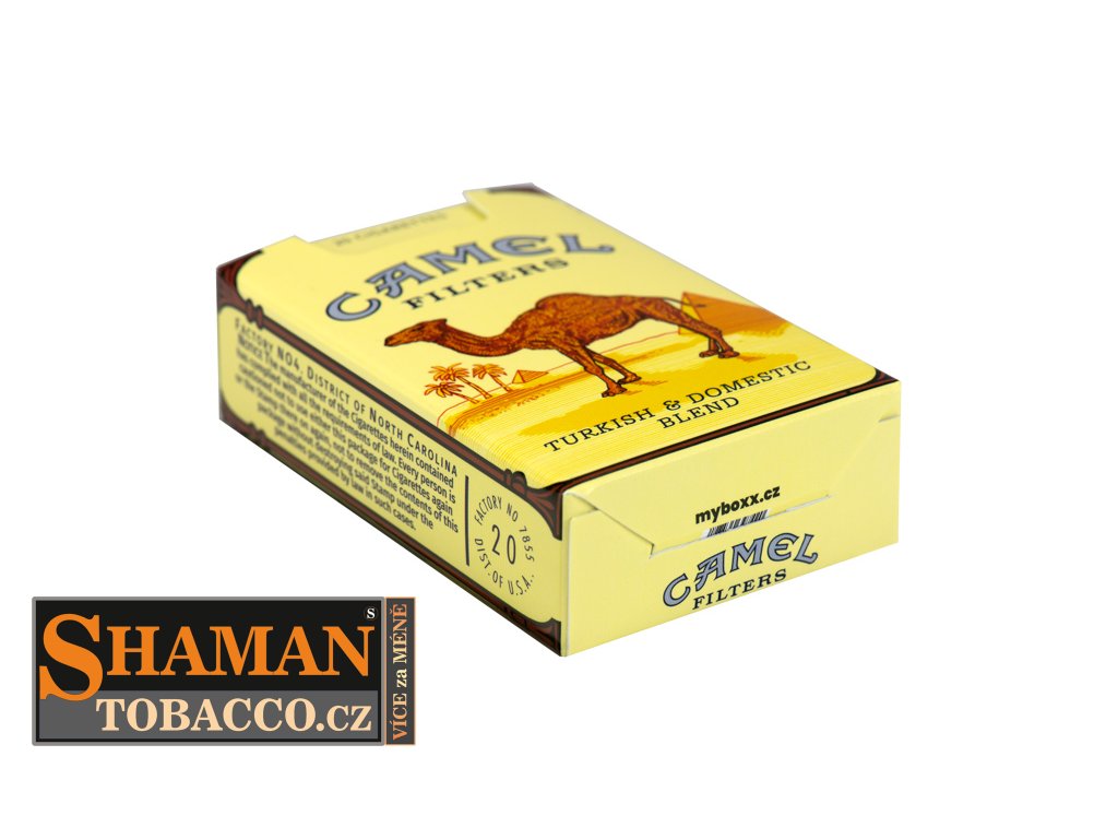 Pevná skládací papírová krabička myBOXX s RETRO motivem CAMEL slouží jako obal na běžnou velikost cigaretových krabiček.