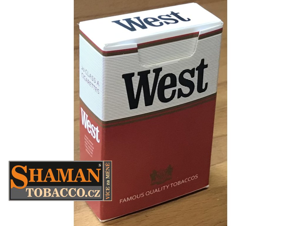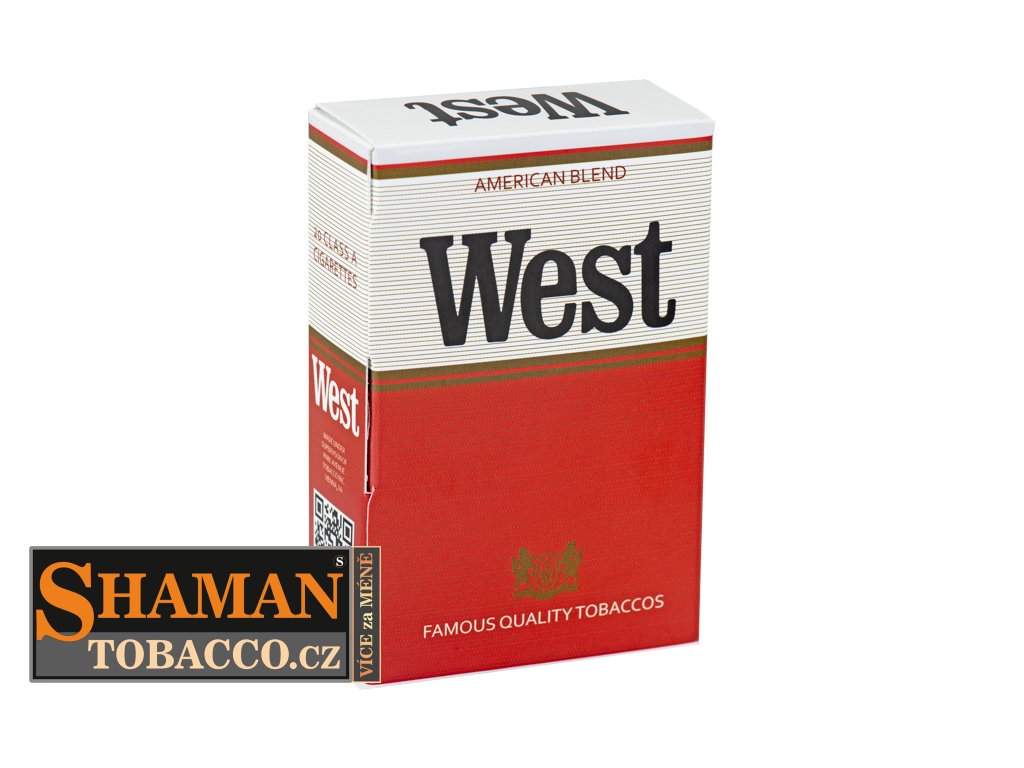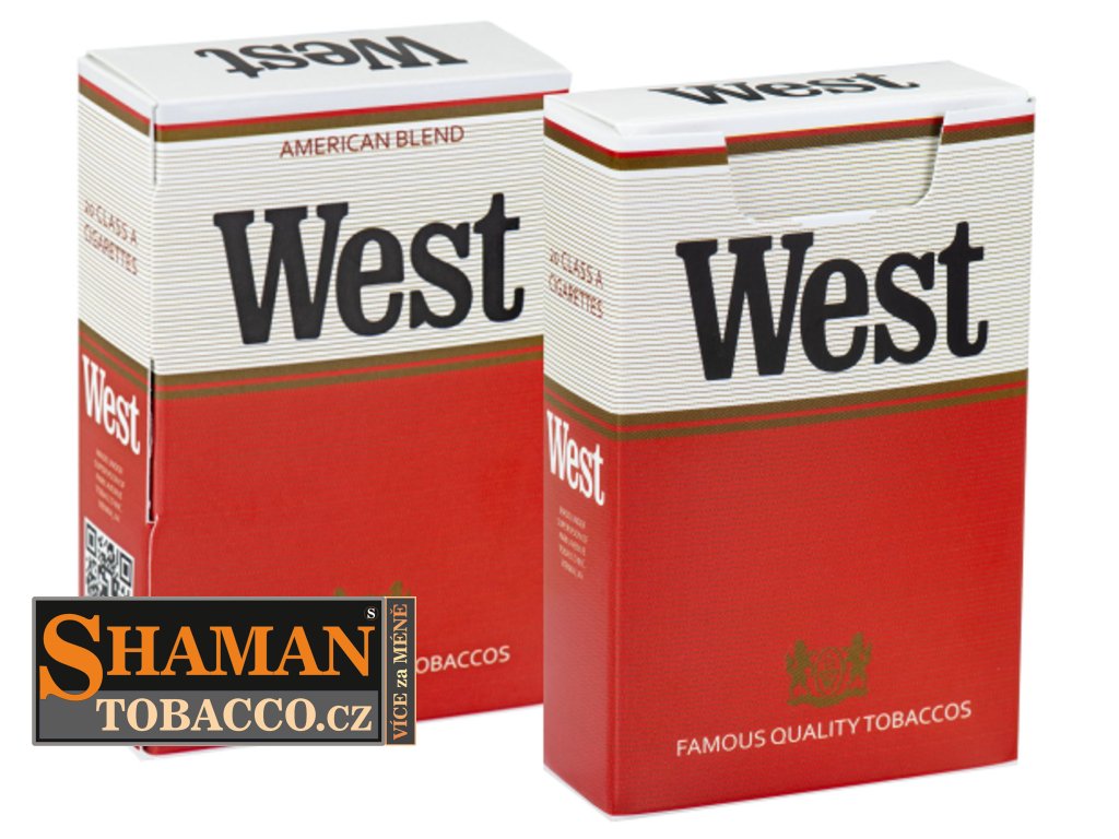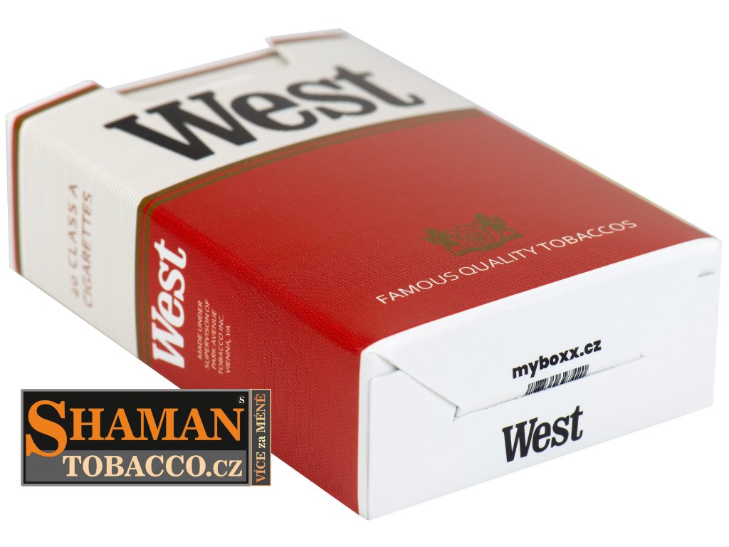 Pevná skládací papírová krabička myBOXX s RETRO motivem WEST RED slouží jako obal na běžnou velikost cigaretových krabiček.