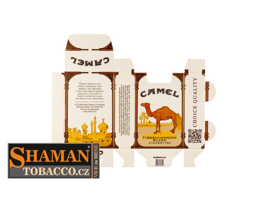 Pevná skládací papírová krabička myBOXX s RETRO motivem CAMEL CHOICE QUALITY slouží jako obal na běžnou velikost cigaretových krabiček.