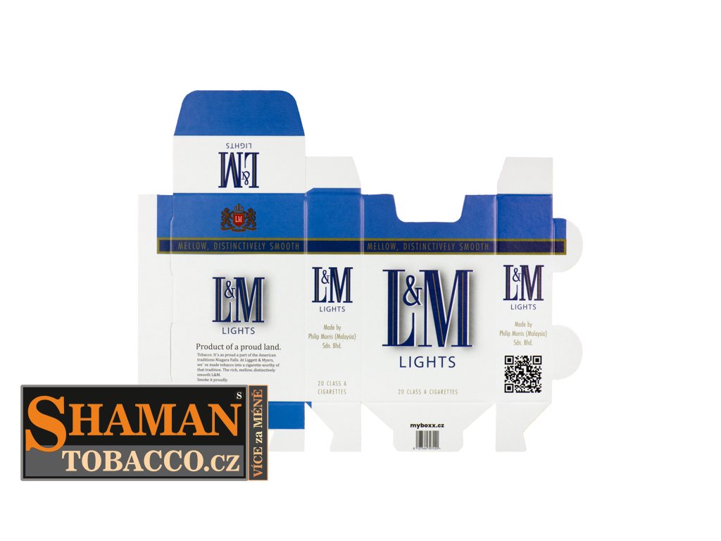 Pevná skládací papírová krabička myBOXX s RETRO motivem LM BLUE slouží jako obal pro cigaretové krabičky standardní velikosti.