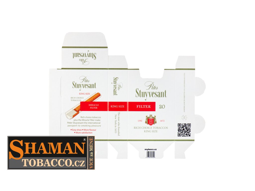 Pevná skládací papírová krabička myBOXX s RETRO motivem PETER STUYVESANT slouží jako obal na běžnou velikost cigaretových krabiček.