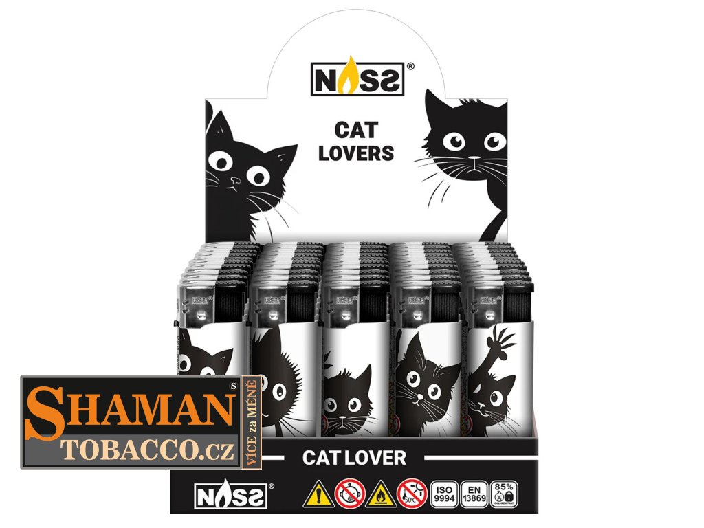 Elektronické (piezzo) plnitelné zapalovače NASS "CAT LOVERS" se zatlačovacím zapalovacím tlačítkem v obchodním balení po 50-ti ks jsou opravdovou zárukou proslulé německé kvality.