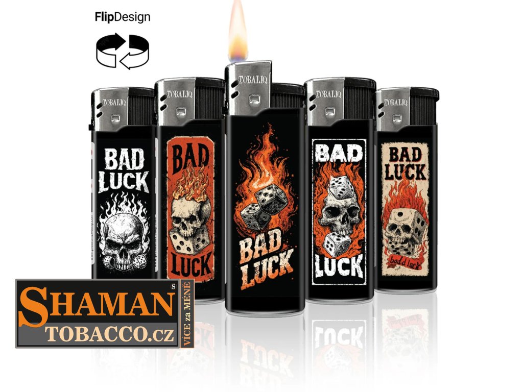 Zapalovač piezzo plnitelný TQ "BAD LUCK" (box 50ks)