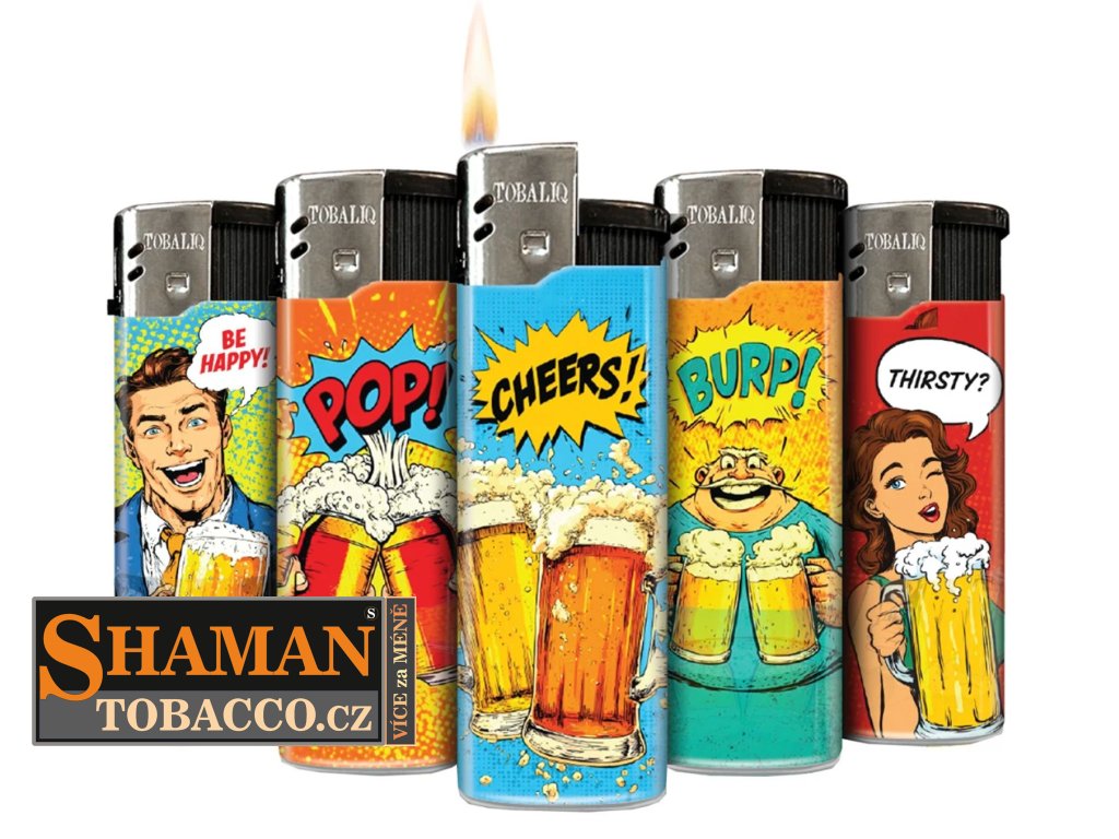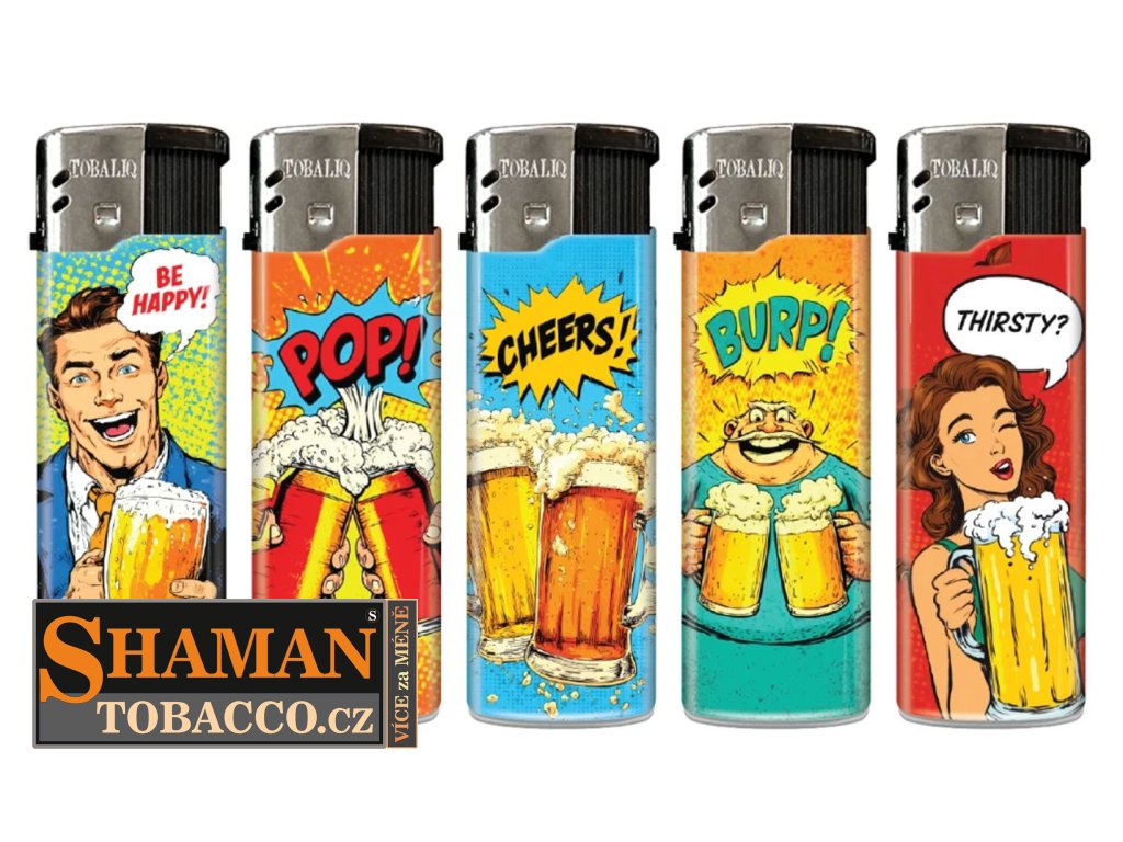Elektronické (piezzo) plnitelné zapalovače TQ "BEER TIME" se zatlačovacím zapalovacím tlačítkem v obchodním balení po 50-ti ks jsou opravdovou zárukou proslulé německé kvality.