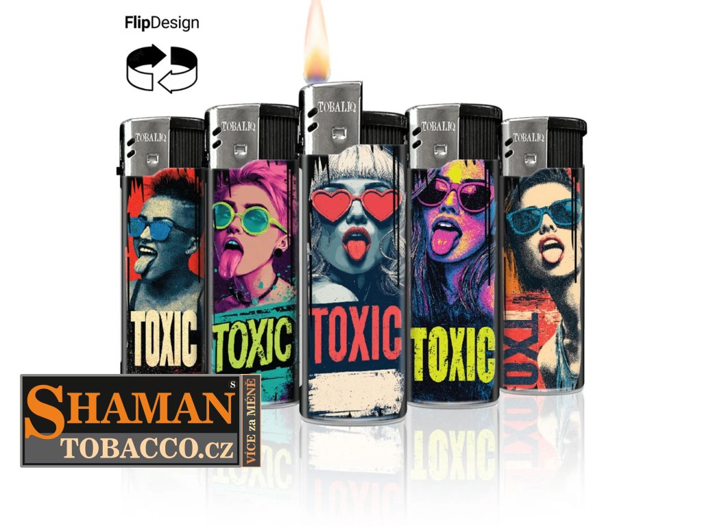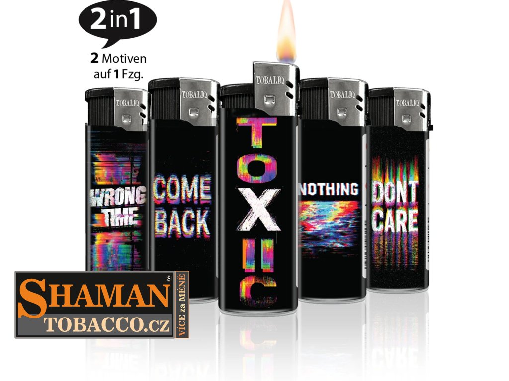 Elektronické (piezzo) plnitelné zapalovače TQ "TOXIC" se zatlačovacím zapalovacím tlačítkem v obchodním balení po 50-ti ks jsou opravdovou zárukou proslulé německé kvality.